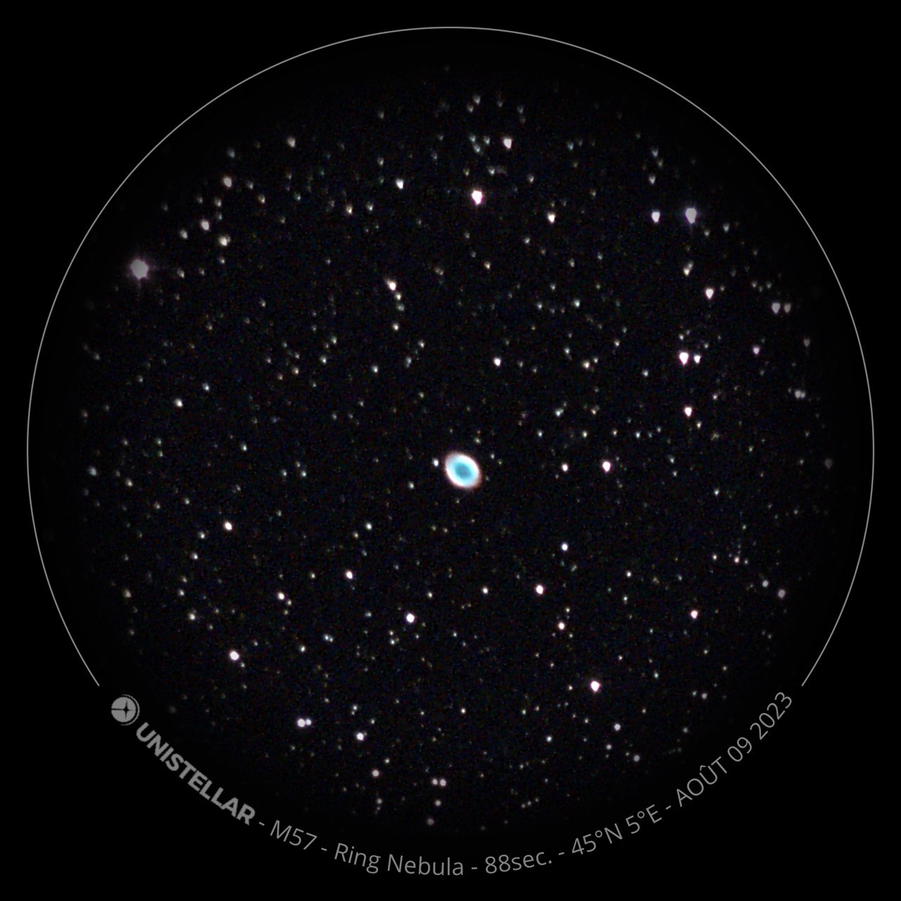 Cette nébuleuse planétaire résulte de l'implosion d'une étoile, elle est présente dans le ciel de l'hémisphère nord et observable toute l'année, dans les meilleures conditions entre mai et septembre. Elle se situe dans la Lyre, l'un des sommets du Triangle d'été, ce qui facilite sa recherche (surtout quand elle occupe le zénith, pendant les mois d'été). Emplacement de M57 dans le ciel de la Terre.