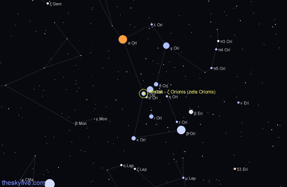 Constellation d'Orion Ascension droite (α) 05h 41m 42,6s2 Déclinaison (δ) −01° 51′ 23″ 2